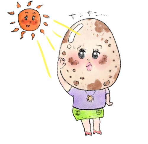 - 女の子で美容について、悩んでいるイラストということで、打合せでわかりやすく悩みの擬人化にして はどうですか?とご提案をしてブルドックのたるみちゃん、しみのうずらのたまごちゃん、カサカサ肌のハニワちゃん、毛穴のみかんちゃんのキャラを制作いたしました